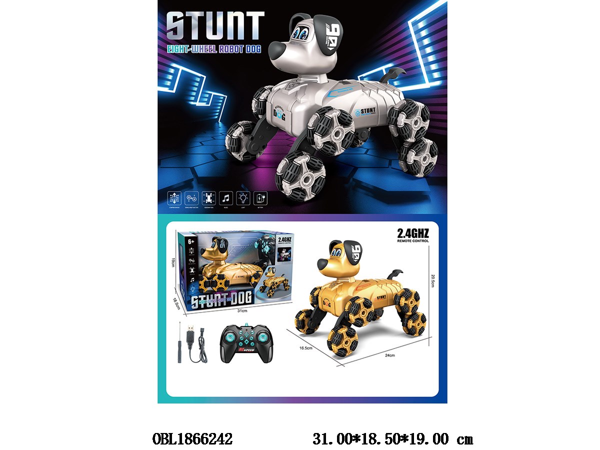 Home > R/C Car > Remote control robot dog stunt car with lights, music, and USB cable. Body 3.7V lithium battery with power included remote control 2 * AA, no power included. 2.4G frequency, 2 colors mixed