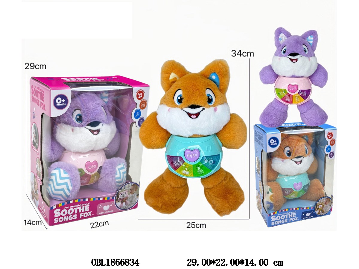 Plush Fox English Early Education Storytelling Machine 3 * AA, no electricity included, 2 colors mixed
