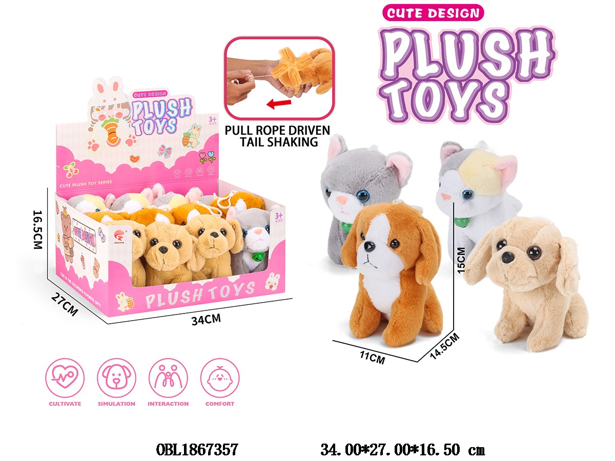 Pull string tail cartoon cat and dog 4 mixed packages, 12 pieces, 1 display box