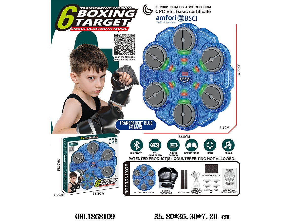 Flash Diamond Blue 6-Key Smart Bluetooth Music Boxing Target Set with USB Cable 3.7V Battery Pack