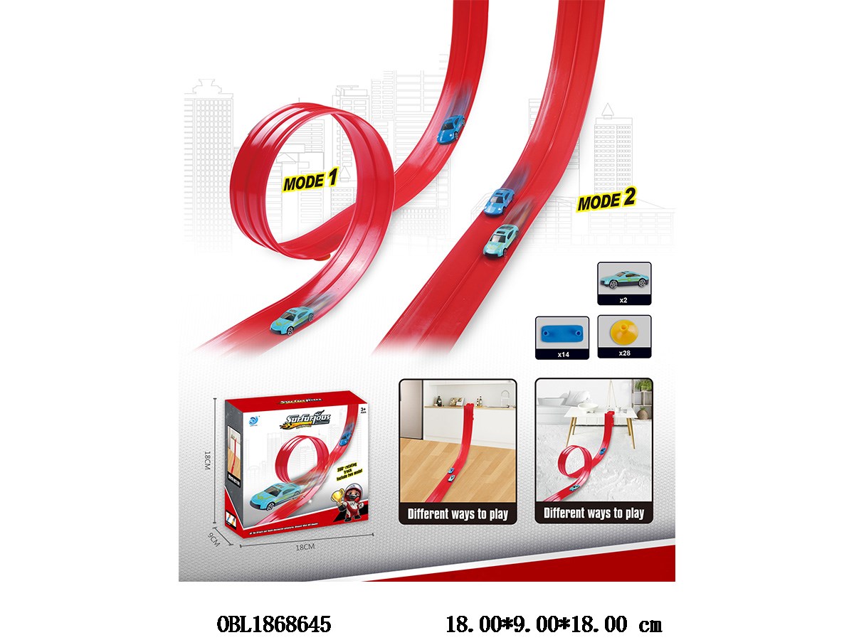 Sliding double track rail car set with 2 sliding trolleys