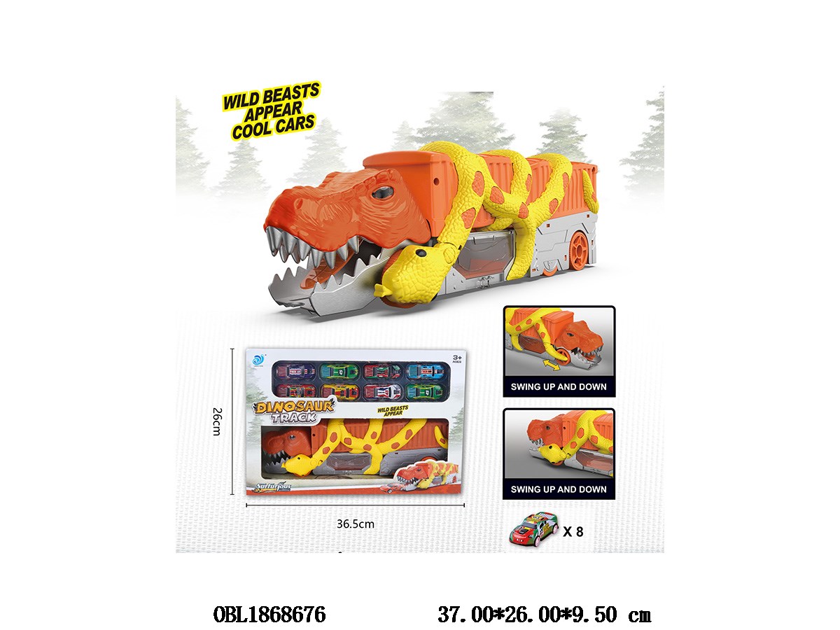 Sliding Dinosaur Container Truck Set with 8 Sliding Small Cars