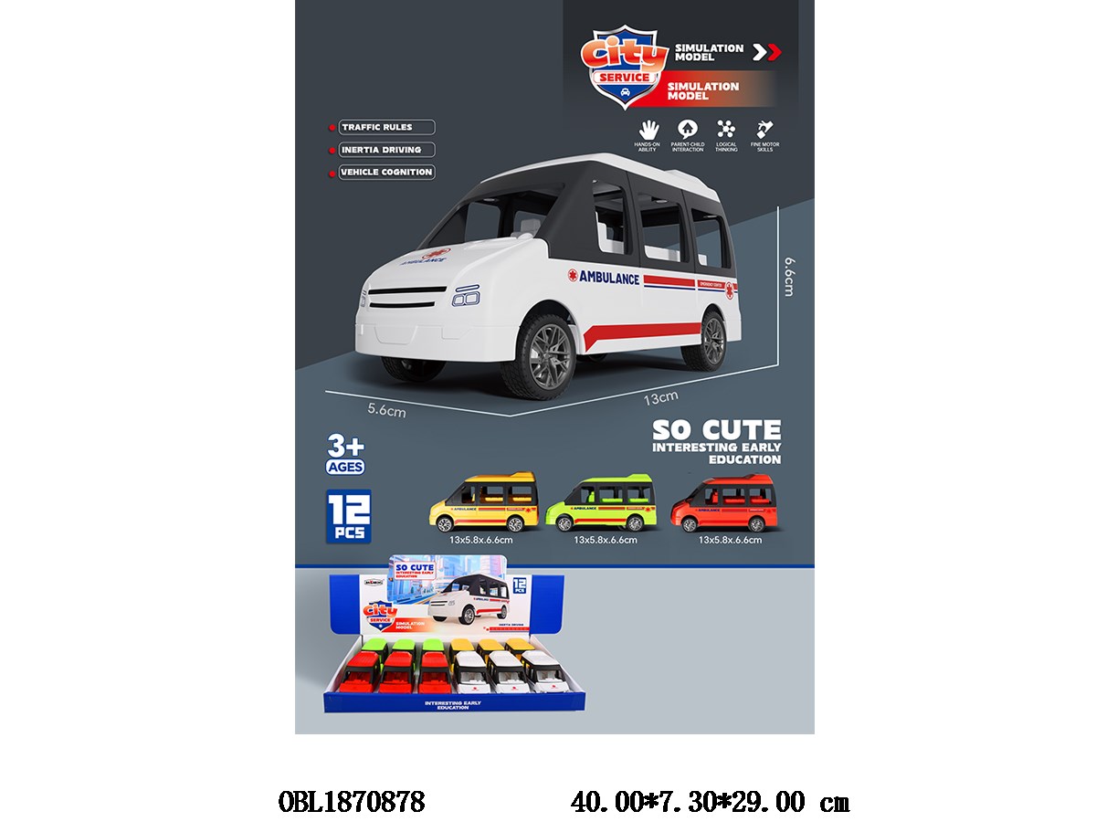 Inertial ambulance 4-color mixed packaging, 12 pieces per display box