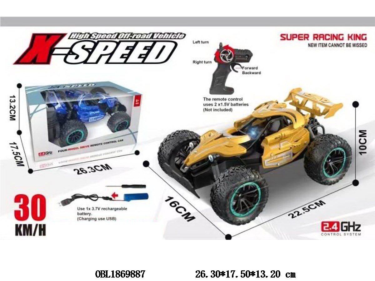 Off road four-wheel drive remote control car with lights and USB cable, body 3.7V lithium battery with power included remote control 2 * AA, no power included, 2.4G frequency, 2 colors mixed