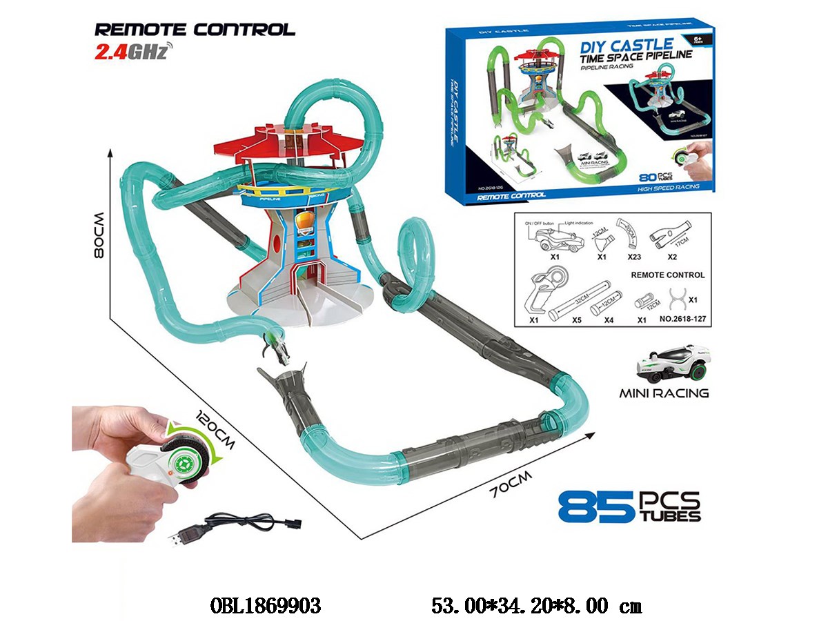 Home > R/C Railcar > Remote Control DIY Castle Time Space Pipeline Catapult Rail Car Set 85PCS with USB Cable Car with Light Lithium Battery Powered Remote Control 2 * AAA Unpackaged 2.4G