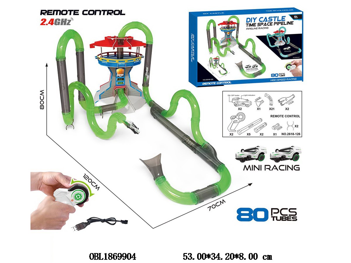 Remote Control DIY Castle Time Space Pipeline Catapult Rail Car Set 80PCS with USB Cable Car with Light Lithium Battery Powered Remote Control 2 * AAA Unpackaged 2.4G
