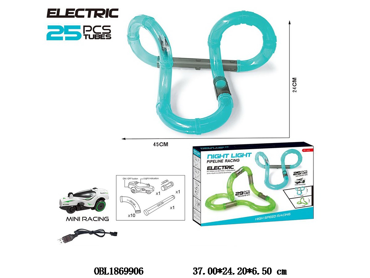 Home > B/O Railcar > Electric luminous high-speed pipeline catapult rail car set 25PCS with USB cable car with light lithium battery pack