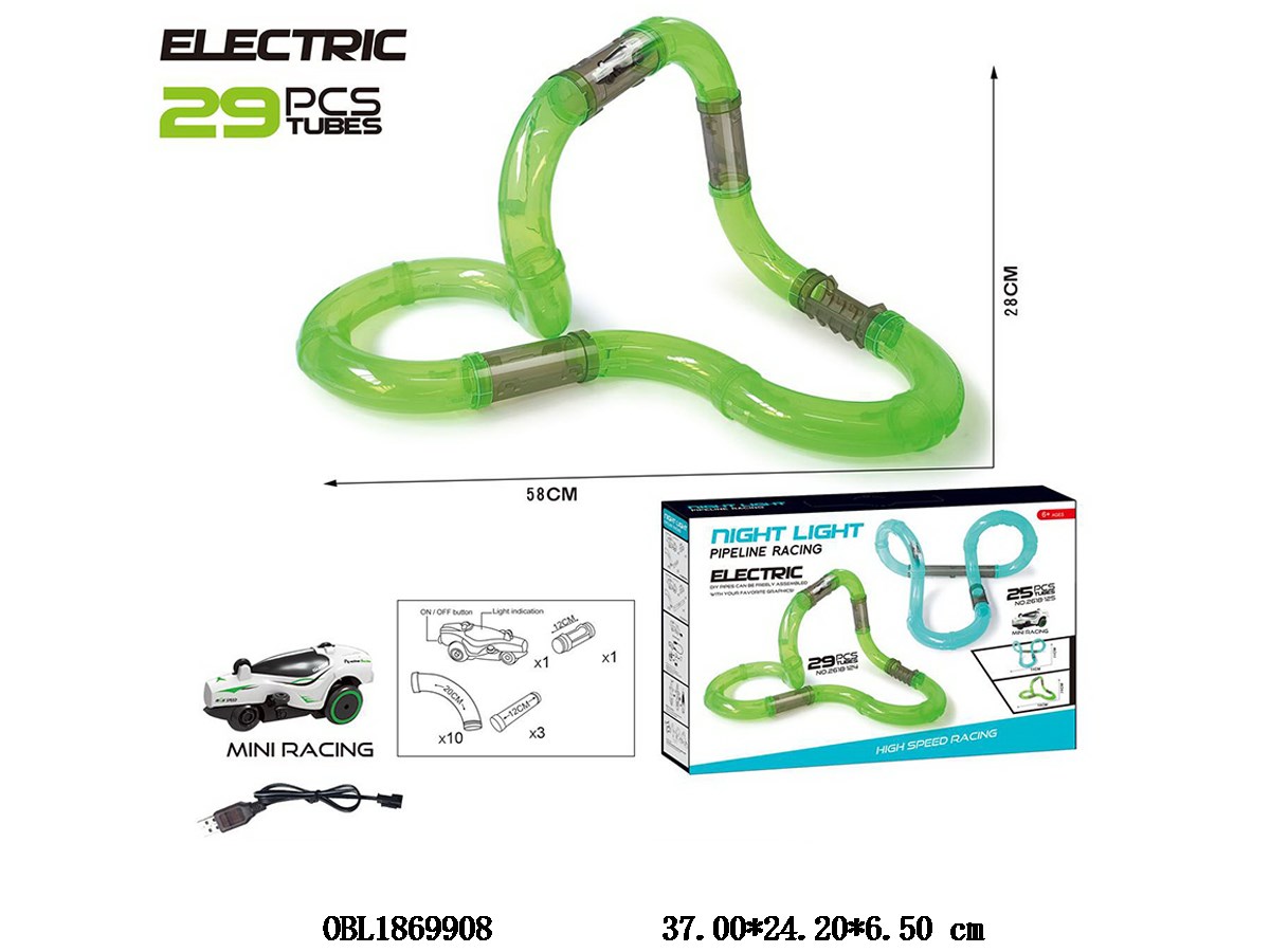 Home > B/O Railcar > Electric luminous high-speed pipeline catapult rail car set with 29PCS and USB cable car with light lithium battery pack