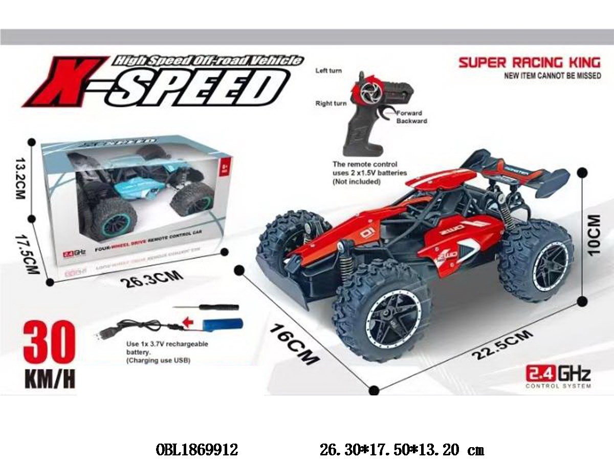 Off road four-wheel drive remote control car with USB cable body 3.7V lithium battery included remote control 2 * AA non included 2.4G frequency 2-color hybrid