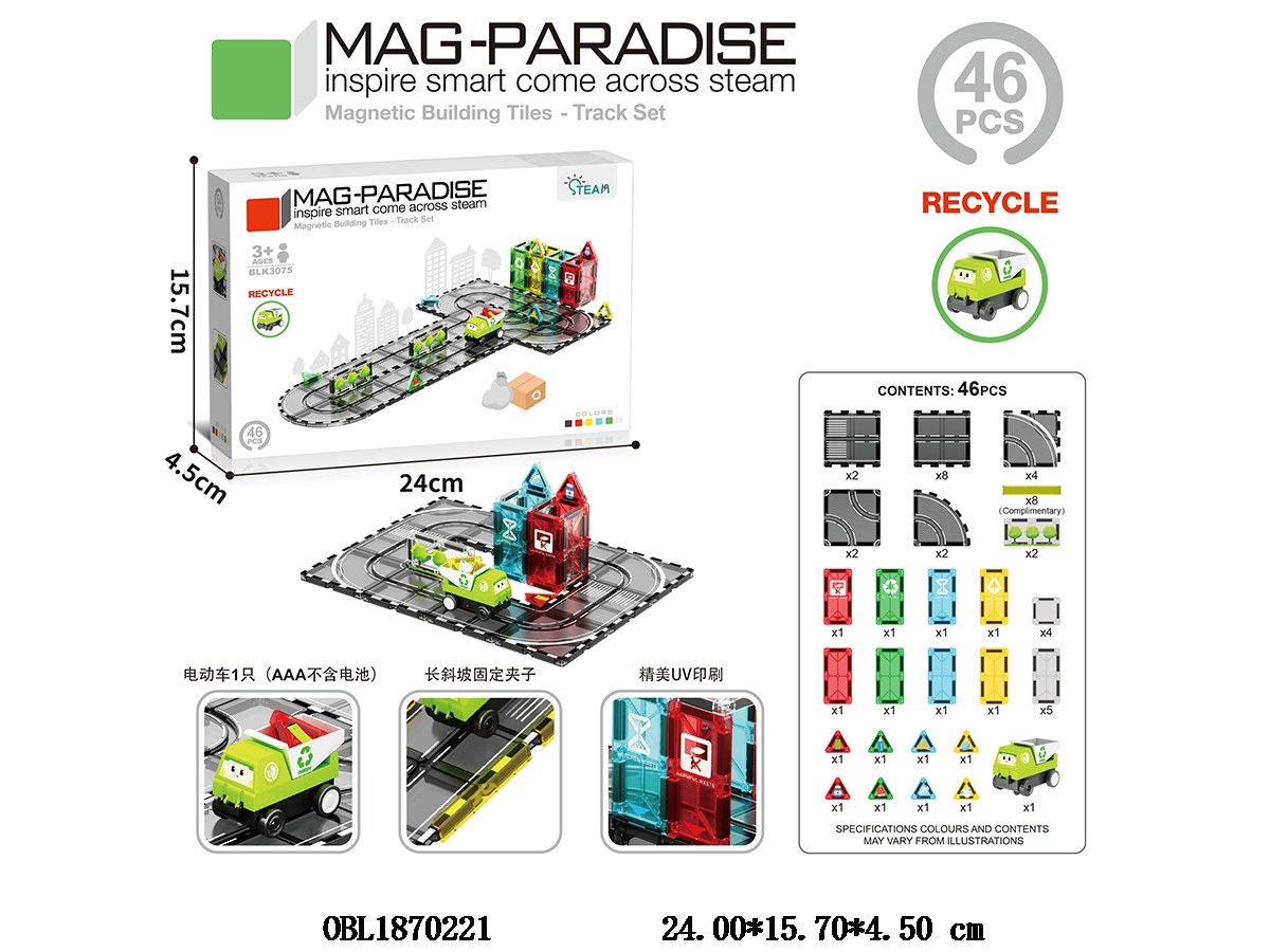 Home > Magnetic Blocks > Puzzle Magnetic Block Mini Track - Clean and Recycled 54PCS Electric Car 1 * AAA, Excluding Electricity