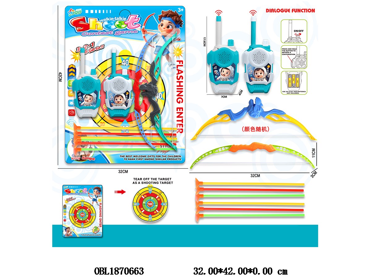 3 * AA walkie talkie/bow and arrow set walkie talkie each without electricity included