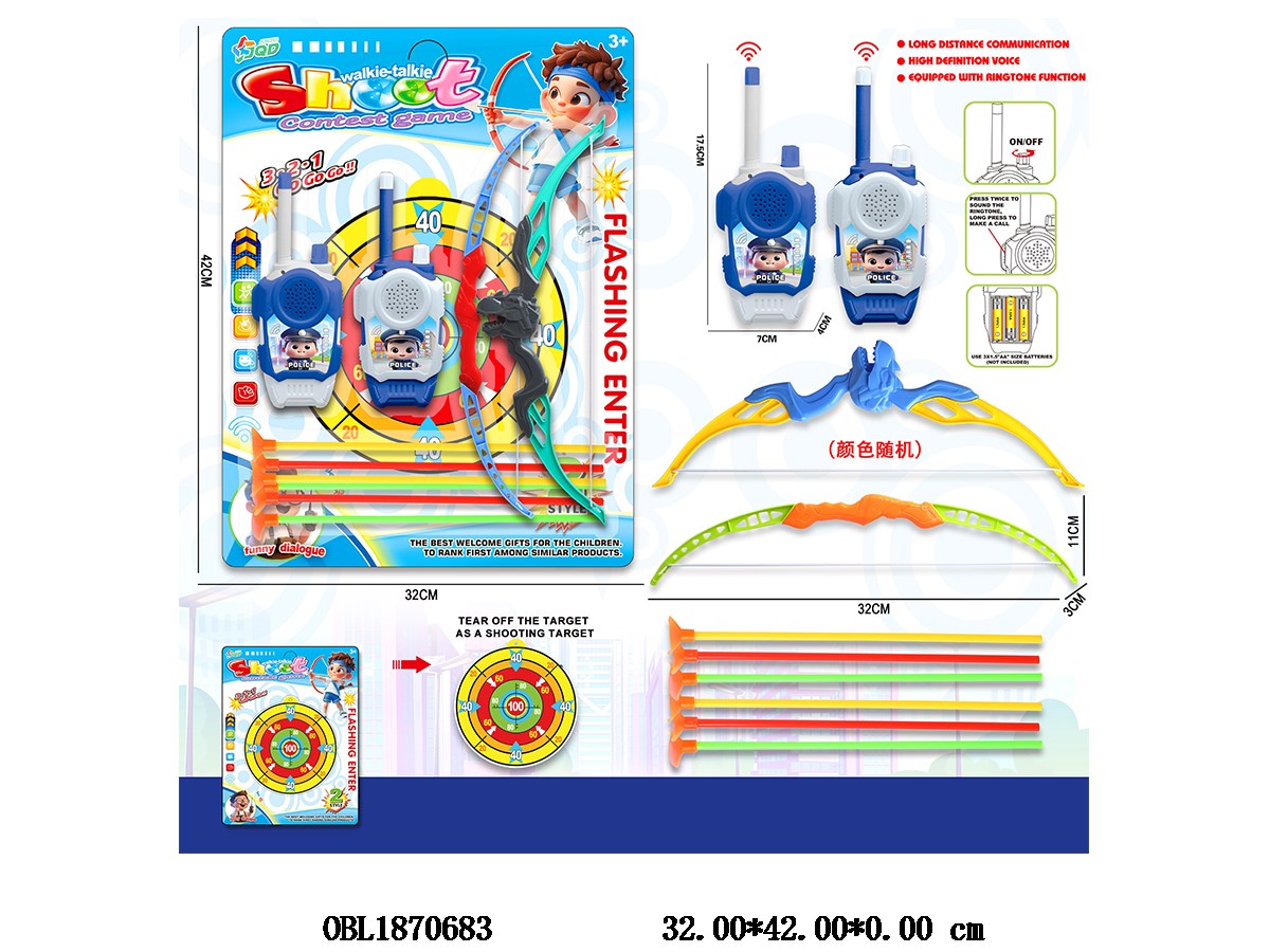 3 * AA walkie talkie/bow and arrow set walkie talkie each without electricity included