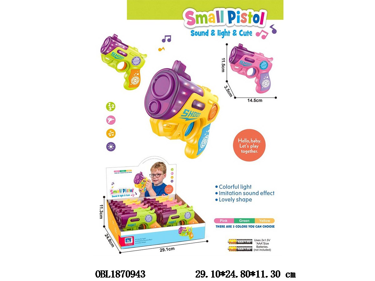 Electric gun with light, music, 3 colors mixed, 2 * AAA, no electricity included, 12 pieces in 1 display box