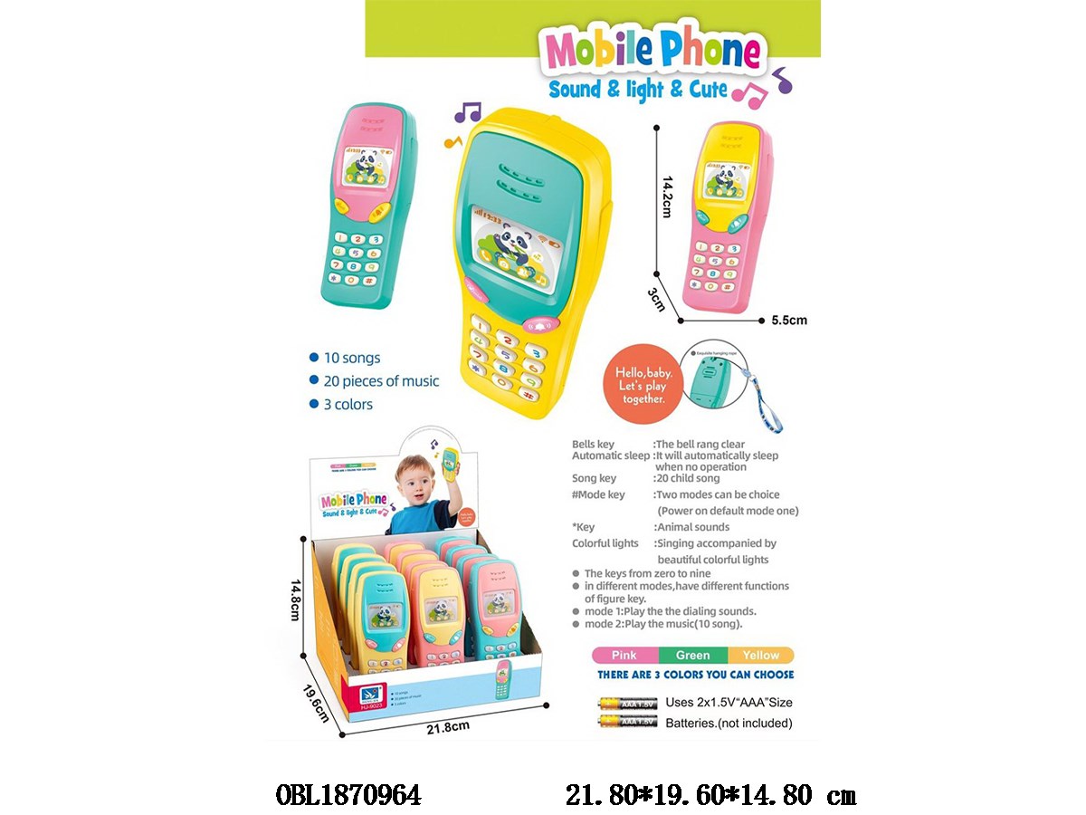 Home > IC Mobile Phone > Retro phone with lights, music, 3 colors mixed, 2 * AAA, no electricity included, 12 packs, 1 display box