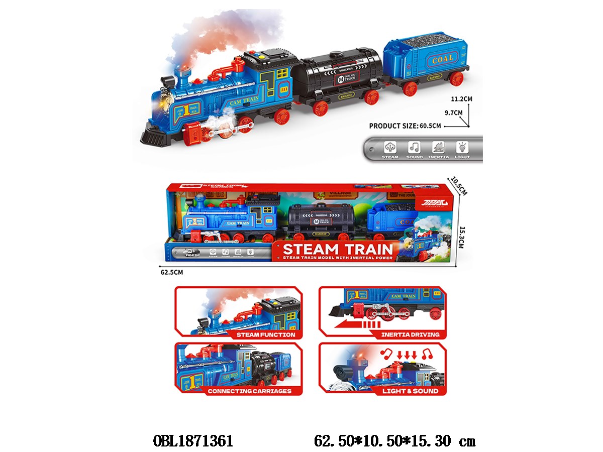 Home > F/P Car > Inertia steam train with light and sound spray 4 * AA without electricity