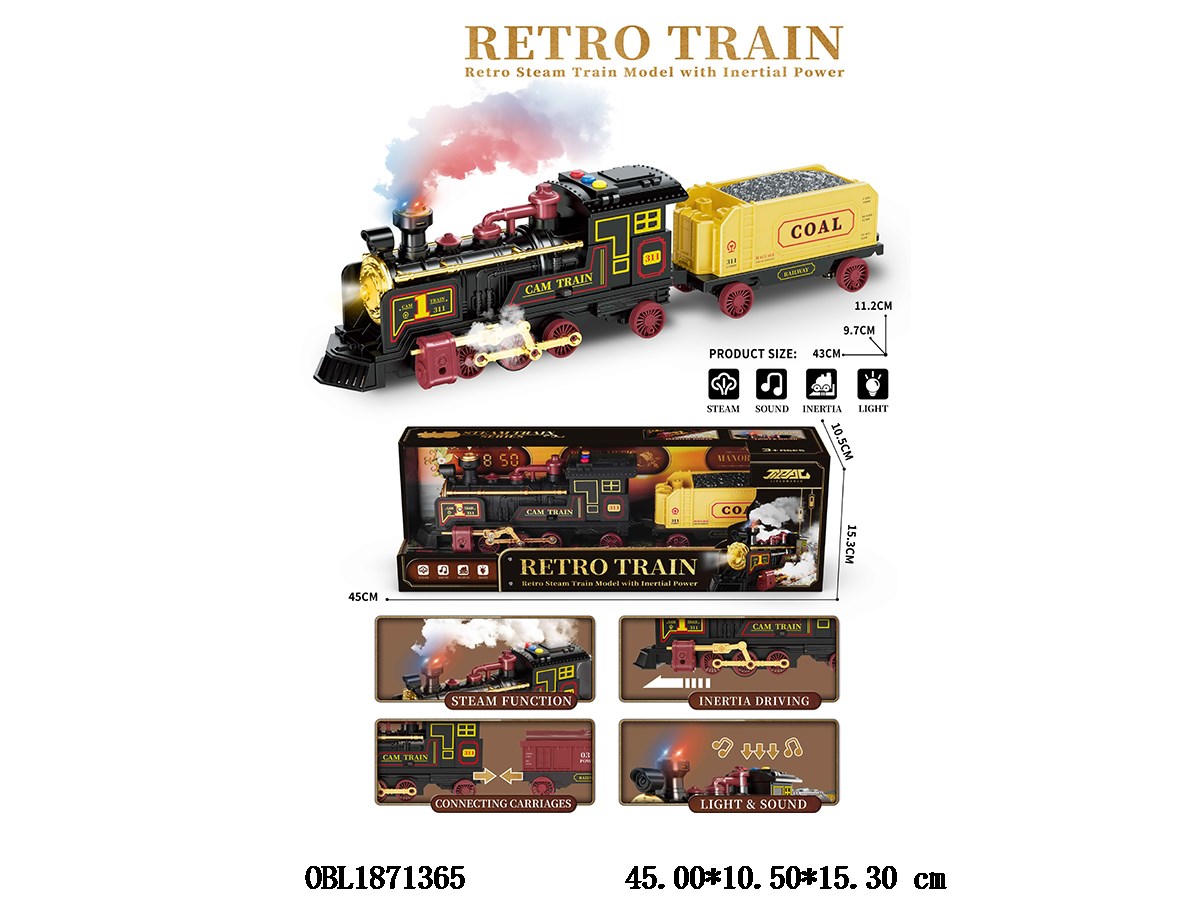 Home > F/P Car > Inertia steam train with light and sound spray 4 * AA without electricity