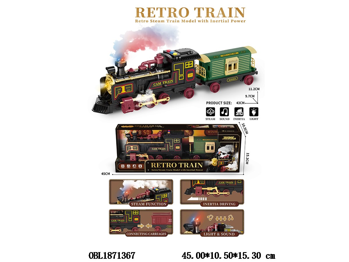 Home > F/P Car > Inertia steam train with light and sound spray 4 * AA without electricity