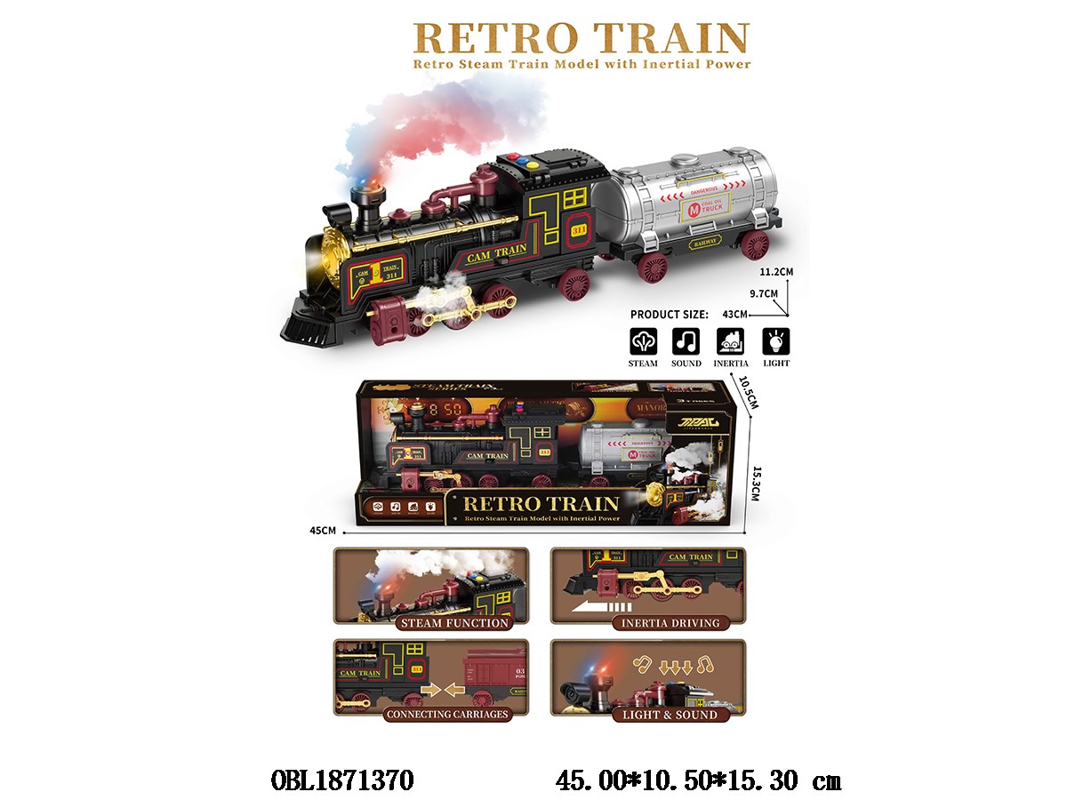 Home > F/P Car > Inertia steam train with light and sound spray 4 * AA without electricity