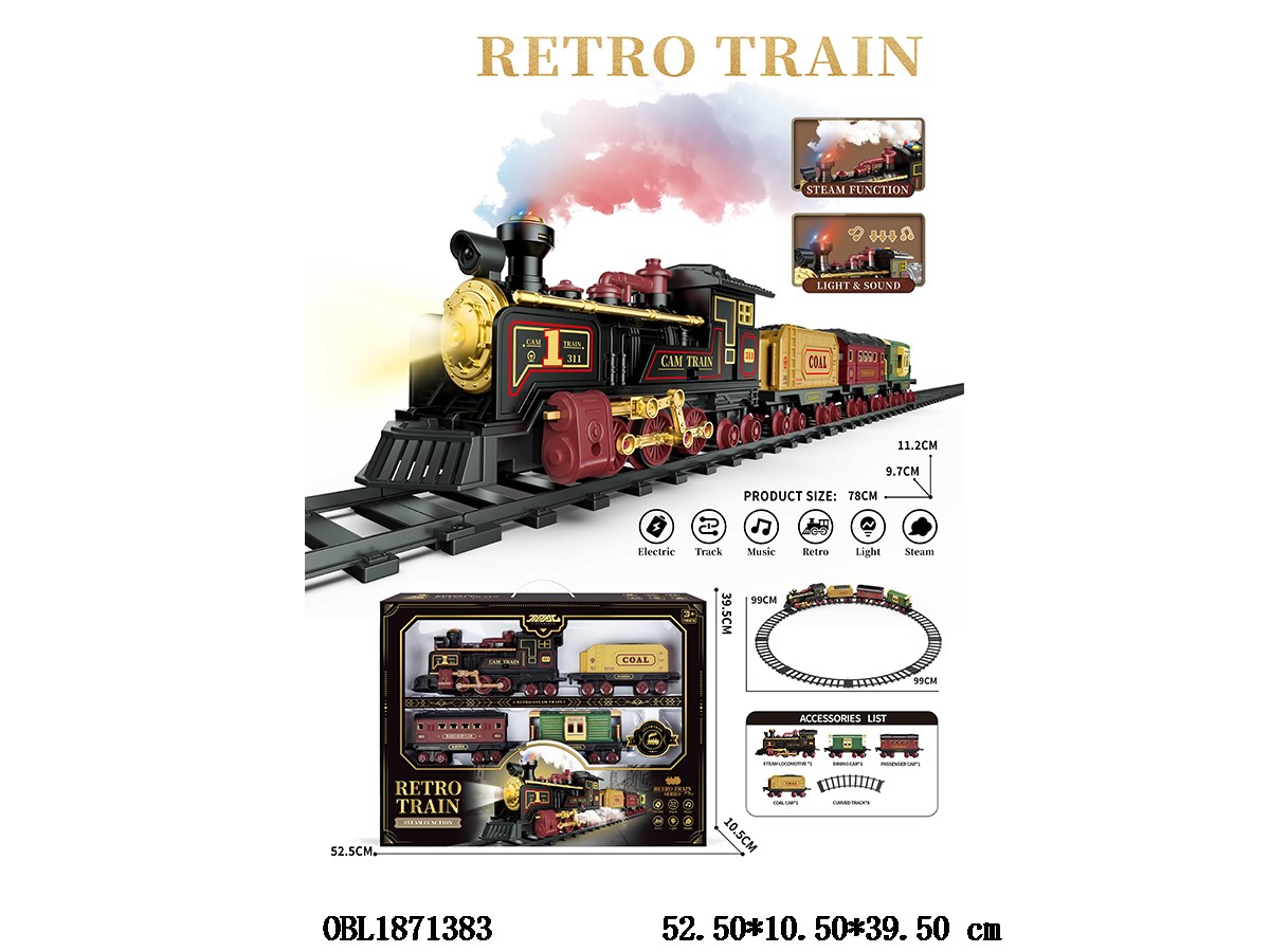 Home > F/P Car > Electric steam train track suit with light and sound spray 4 * AA, excluding electricity