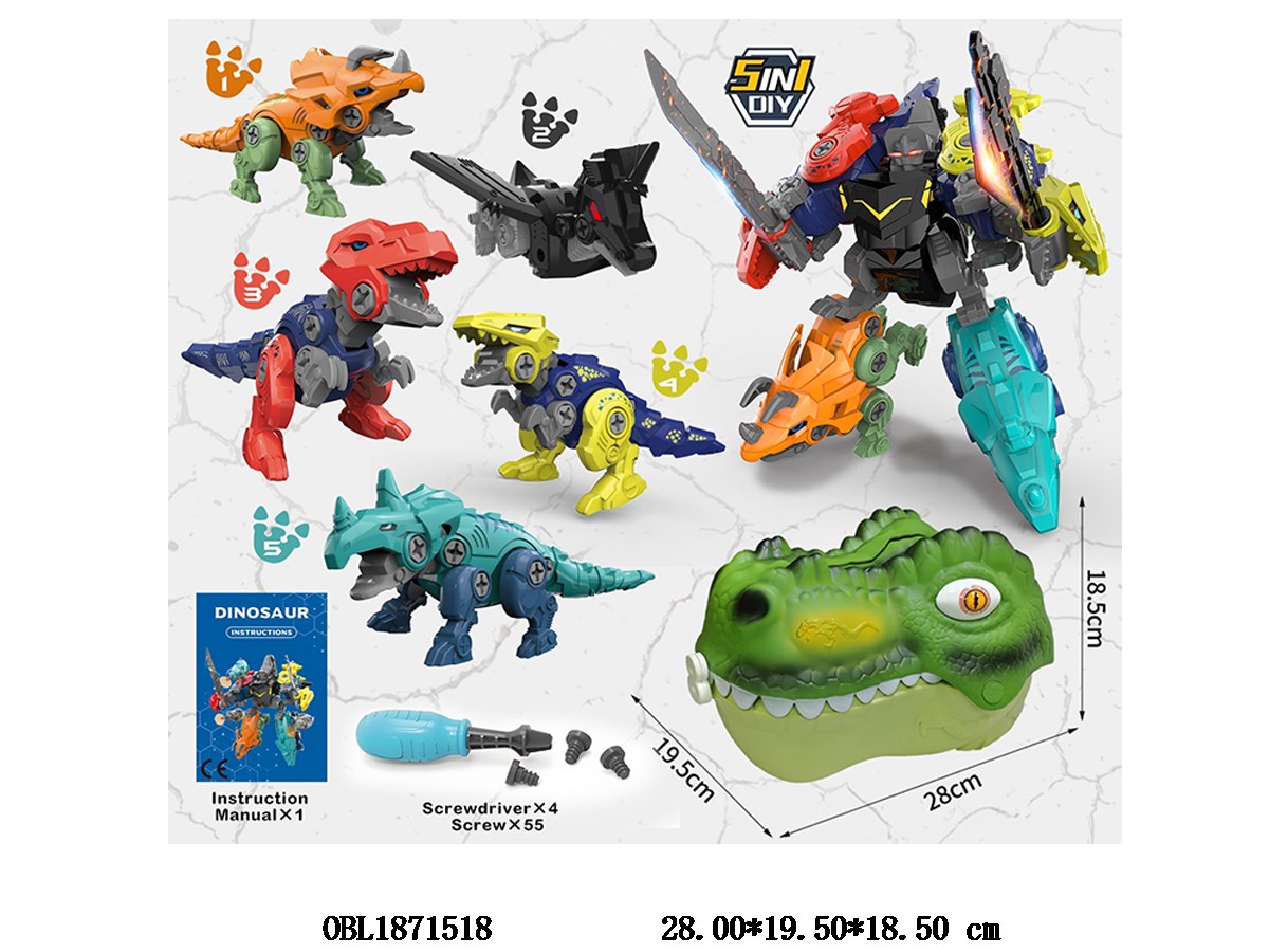 5-in-1 disassembly and assembly deformed dinosaur set storage bucket with hanging card