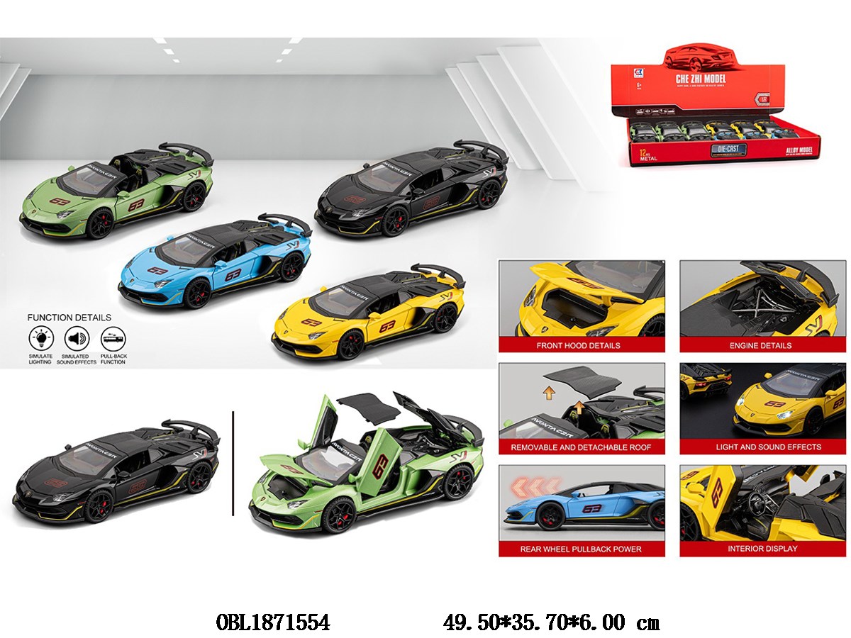 Home > Die-Cast Car > 1: 32 alloy regenerative car with light and sound, capable of opening doors, 3 * AG13 electric package, 4 colors mixed, 12 pieces, 1 display box