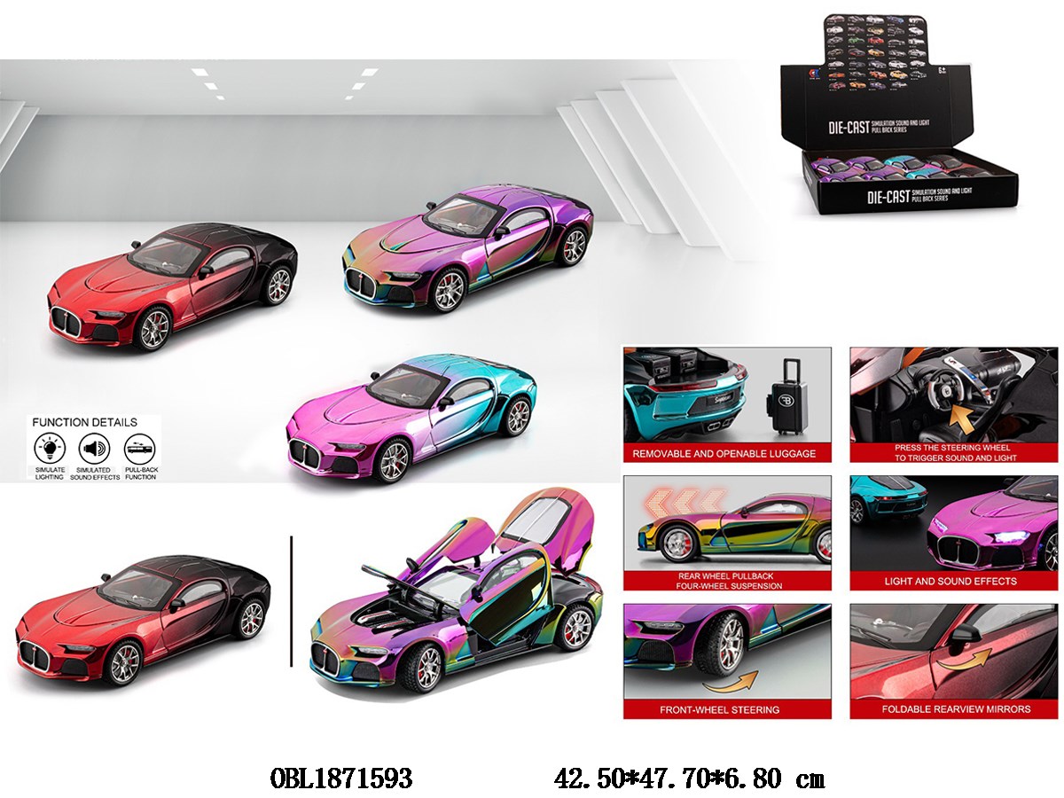 Home > Die-Cast Car > 1: 24 alloy regenerative car with light and sound, capable of opening doors, 3 * AG13 electric package, 3 colors mixed, 8 pieces, 1 display box
