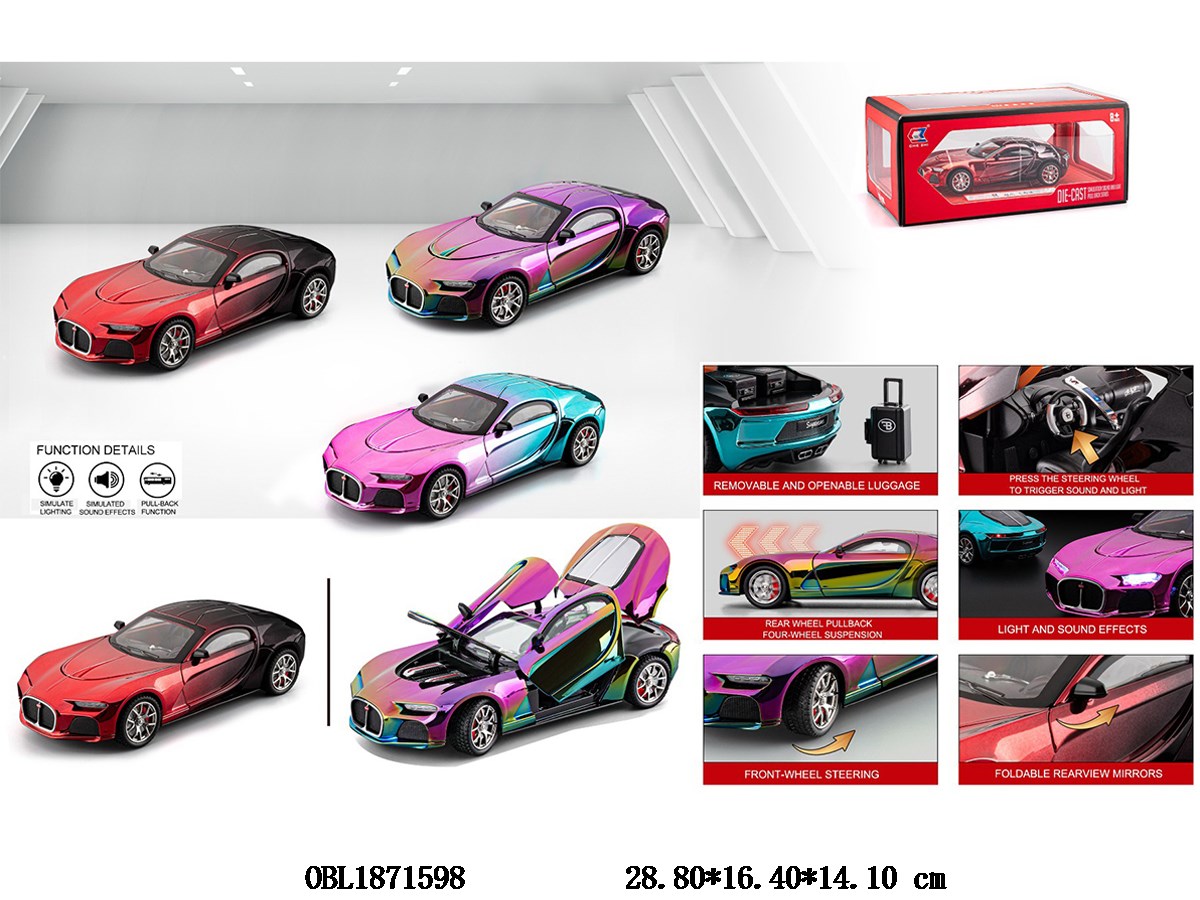 Home > Die-Cast Car > 1: 24 alloy regenerative car with lights and sound, capable of opening doors, 3 * AG13 package, electric, 3-color mixed design