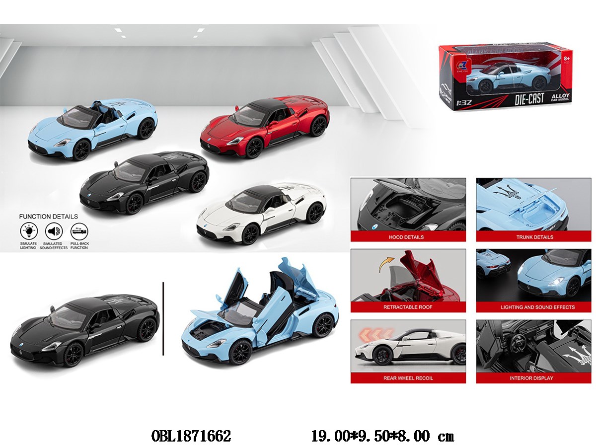 Home > Die-Cast Car > 1: 32 alloy regenerative car with lights and sound, capable of opening doors, 3 * AG13 package, electric, 4-color mixed design