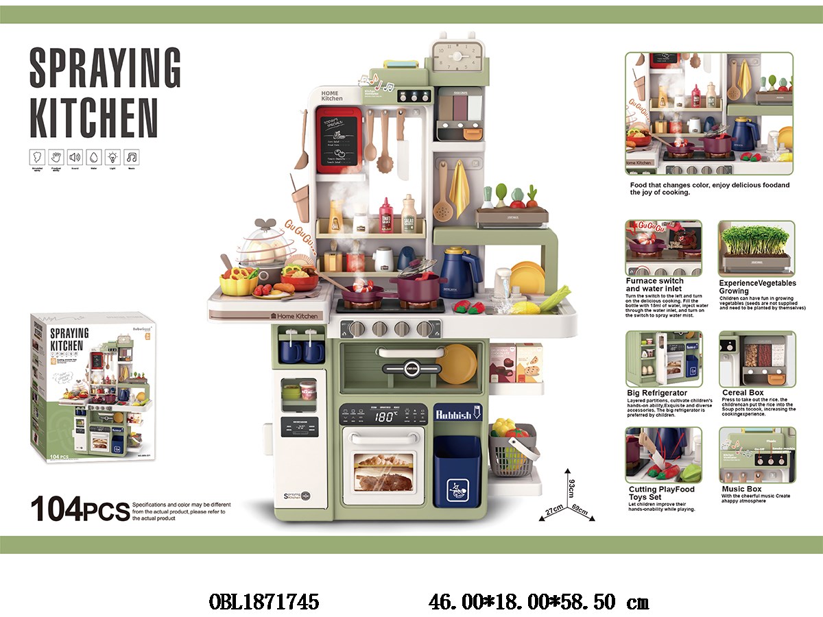 Kitchenware table set with light, music, spray, egg steamer, color change, food faucet, water outlet, total 8 * AA, not including electricity