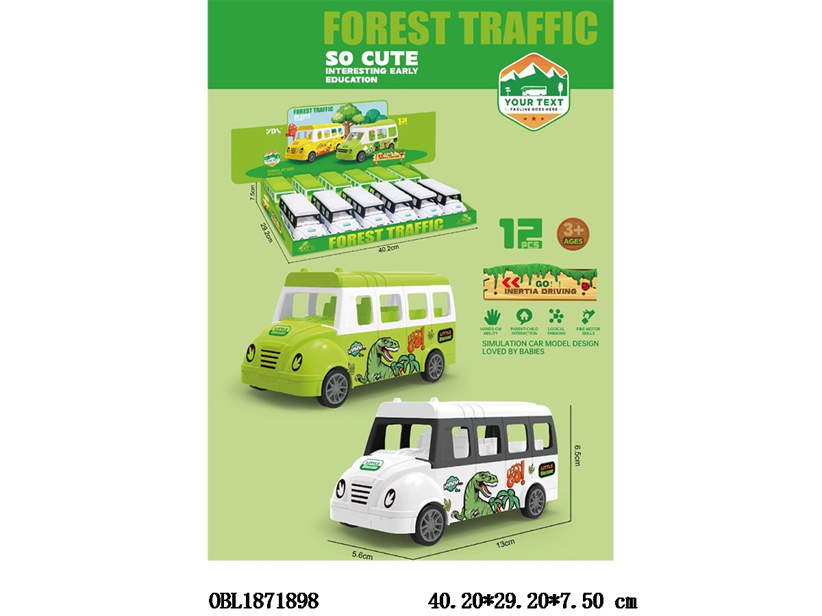 Inertial dinosaur car 2 color mixed packaging, 12 pieces per display box
