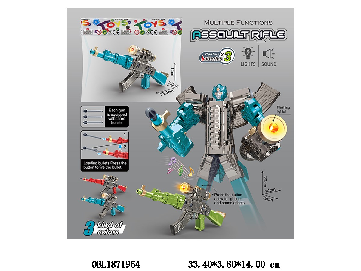 Catapult rifle deformation robot with sound and light, USB cable, 3.7V lithium battery pack, 3-color hybrid