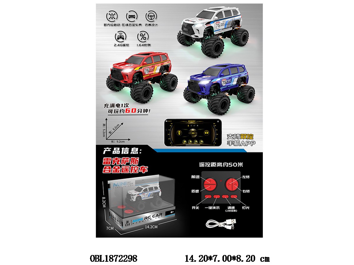 Eight way remote control alloy car with lights and USB cable, body 3.7V battery included remote control 2 * AAA without power, 2.4G frequency, 3-color mixed design