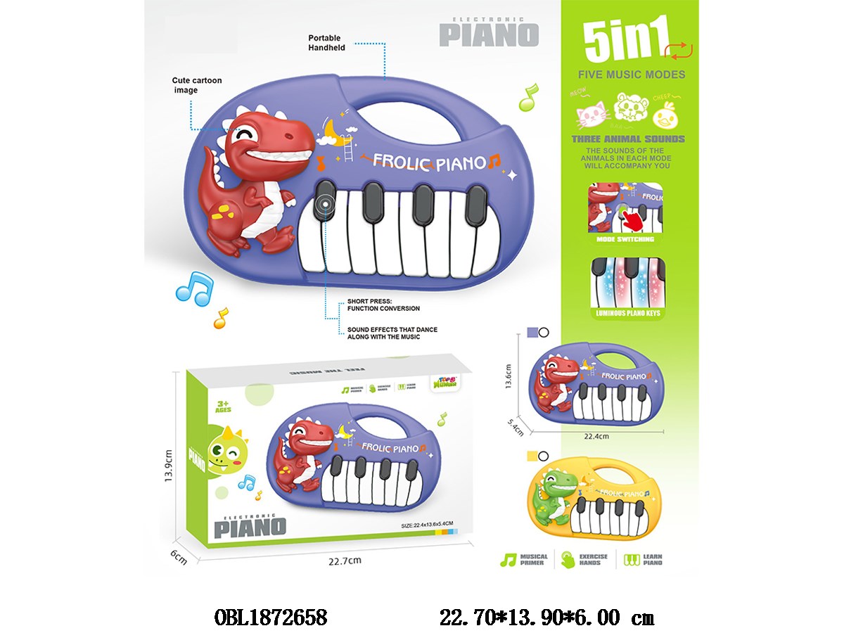 Dinosaur electronic keyboard 3 * AA, no electricity included, 2 colors mixed
