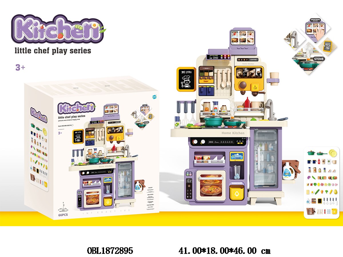 Home > Kitchen Ware/Furniture > Kitchenware table set with light, music, spray, water outlet gas stove, 3 AA/range hood, 2 AA/touch-screen ordering machine, 2 AA, without power