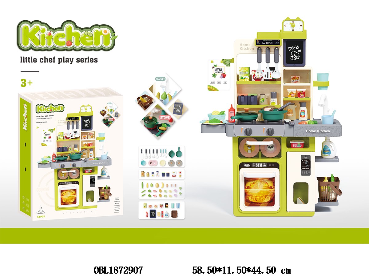 Kitchenware table set with light, music, spray, 3 AA, no electricity