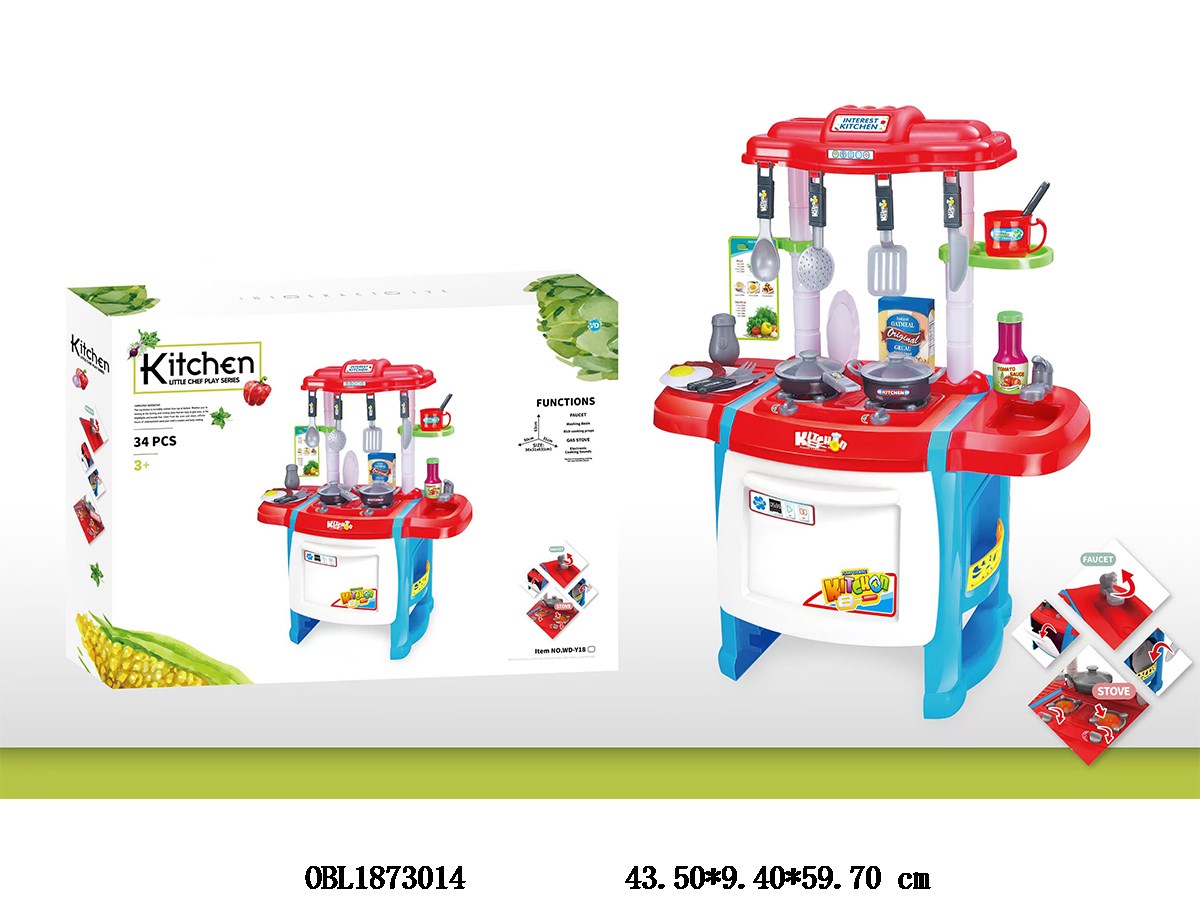 Kitchenware countertop set with lighting, music, 3 AA, no electricity included