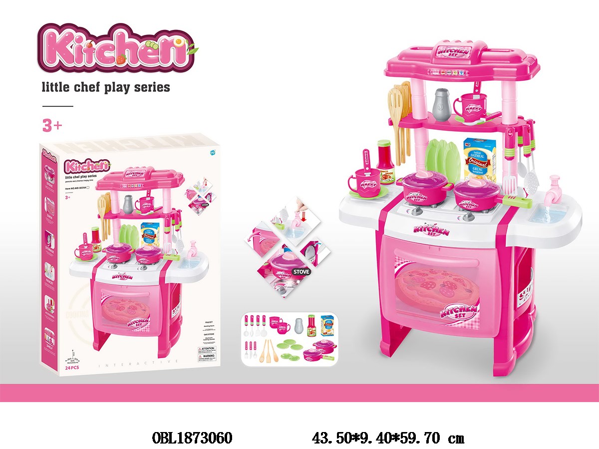 Kitchenware countertop set with lighting, music, water outlet, 3 AA tablets, no electricity included