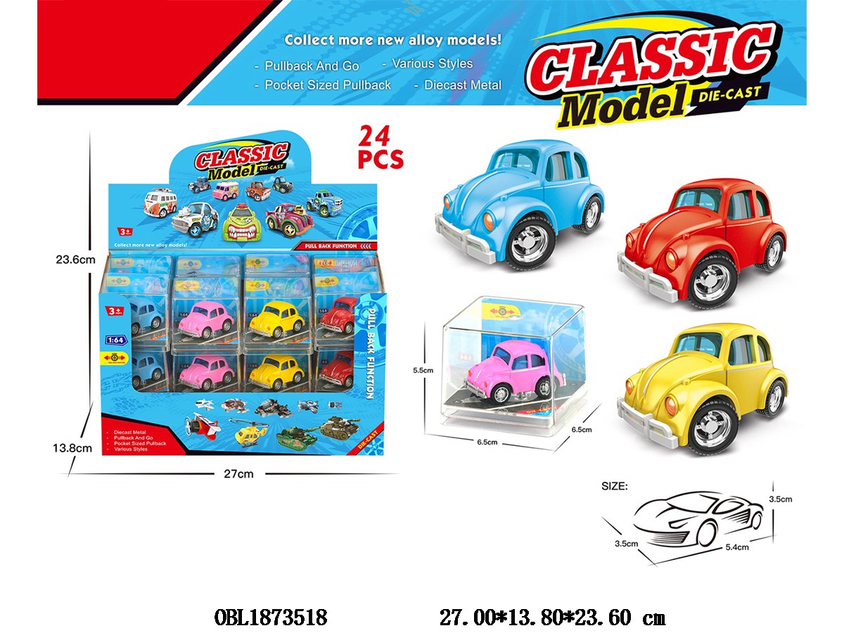 Home > Die-Cast Car > Alloy rebound simulation vintage car 4-color mixed 24 box display box