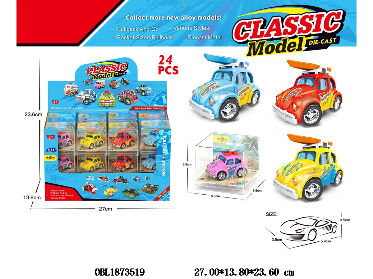 Home > Die-Cast Car > Alloy printed vintage car with 4 colors mixed packaging, 24 boxes, 1 display box