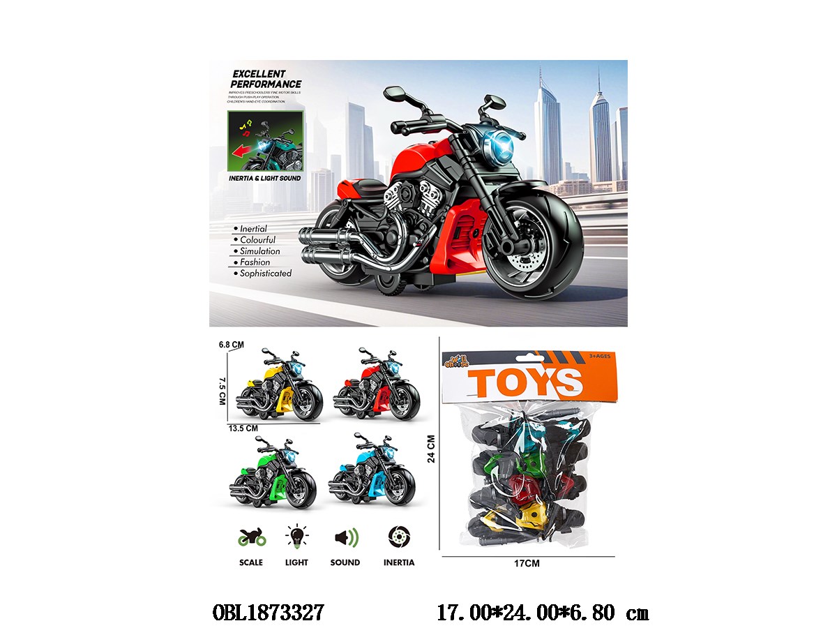 Home > F/P Motorcycle > 4-pack inertia motorcycle set with sound and light, 3 * AG13 package, electric, 4-color mixed packaging