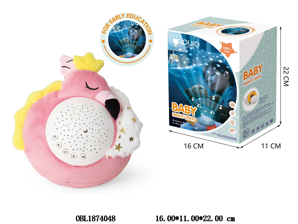 Home > Other Baby Toys > Baby plush soothing flamingo with lighting, music projection, 3 * AA, no electricity included