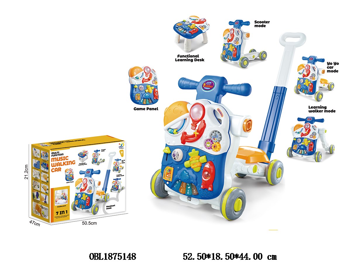 7-in-1 baby walker with lights, music, 3 * AA, no electricity included, blue