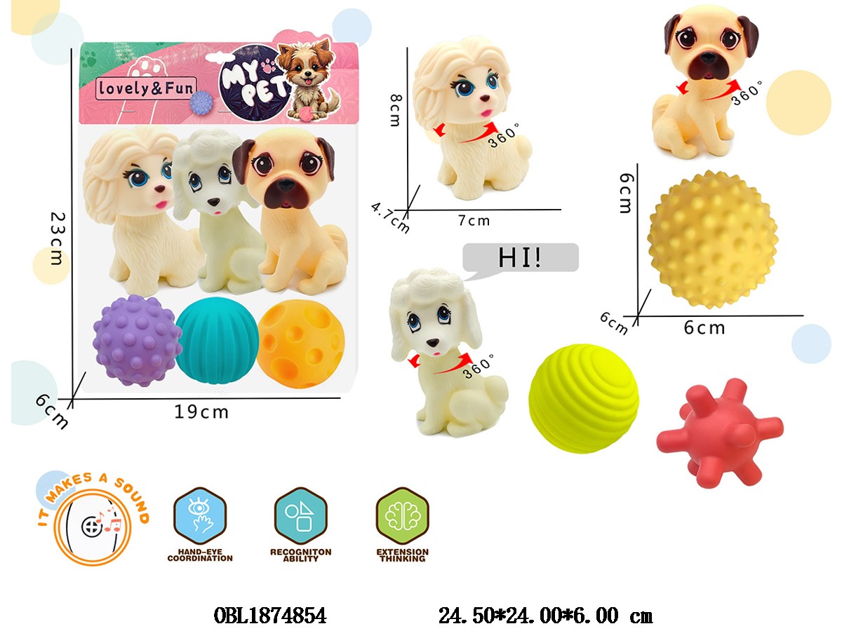 6 bathroom water splashing vinyl puppy toys with BB whistle