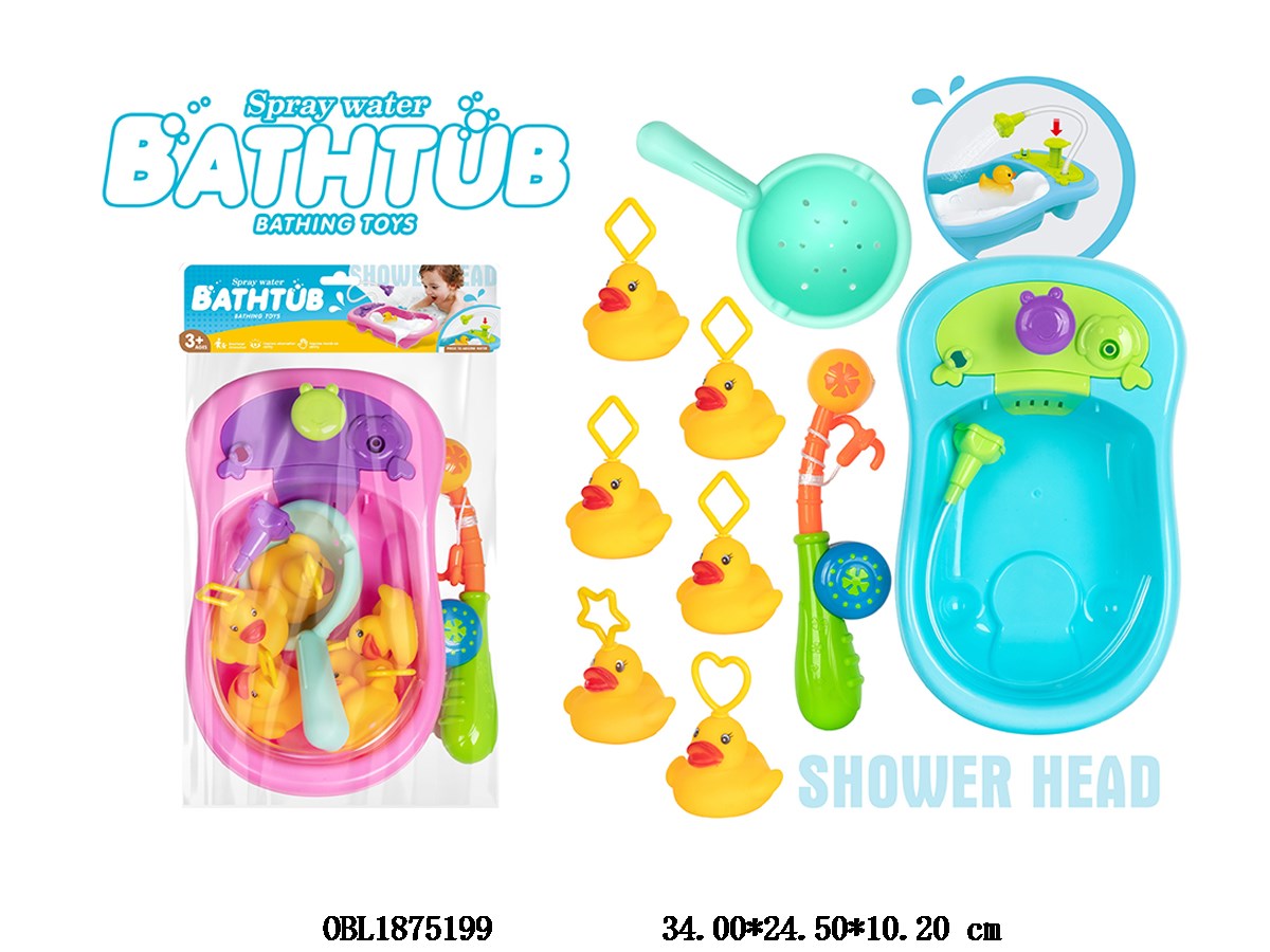 Bathtub duck fishing set with press water, mixed in 2 colors