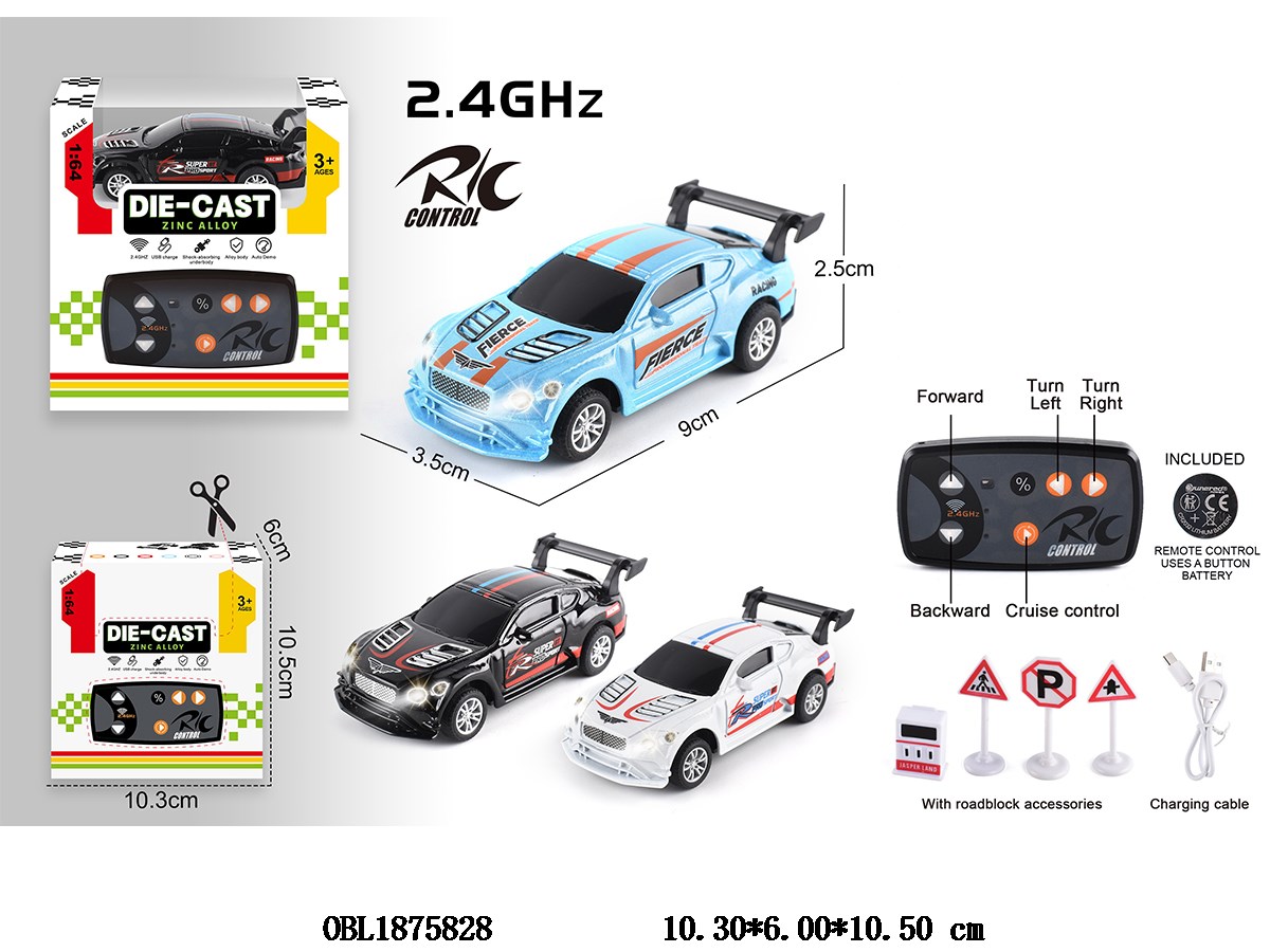1: 64 Five Way Alloy Remote Control Car with Lighting and USB Cable Car Sound 3.7V Lithium Battery Pack Remote Control 1 * CR2032 Pack 2.4G Frequency 3-color Hybrid