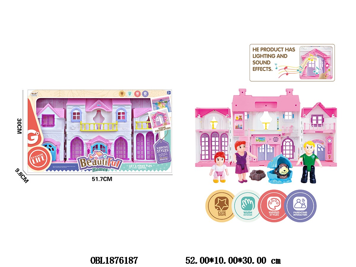 Home > Villa Set > Villa set with 3 dolls with lights, doorbell 2 * AA, no electricity included