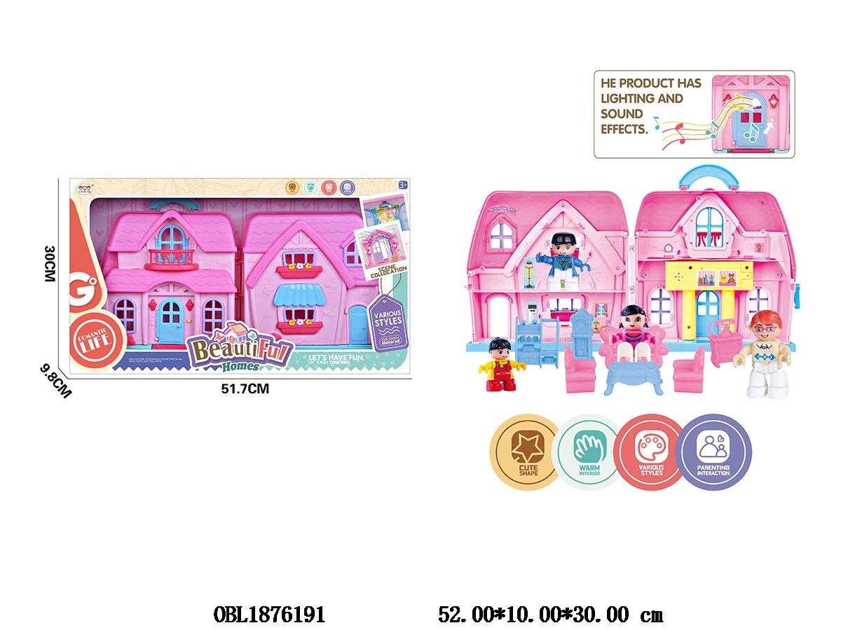 Home > Villa Set > Villa set with 4 building block figurines with lights, doorbell 2 * AA, no electricity included
