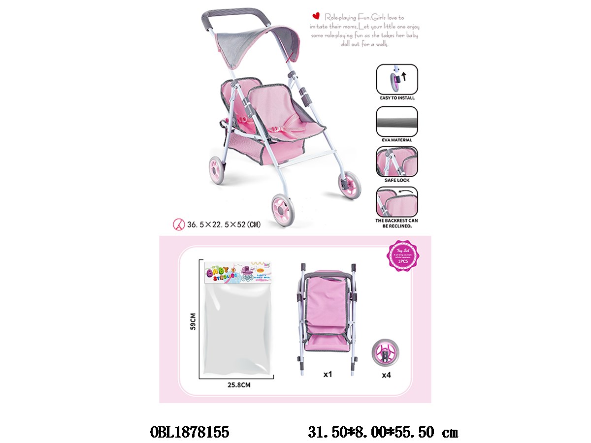 Home > Baby Stroller > Doll self installed EVA wheel double seat iron cart