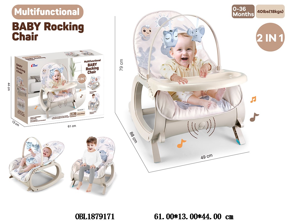 Home > Baby rocking chair > Multi functional baby rocking chair with music 2 * AA, no electricity included