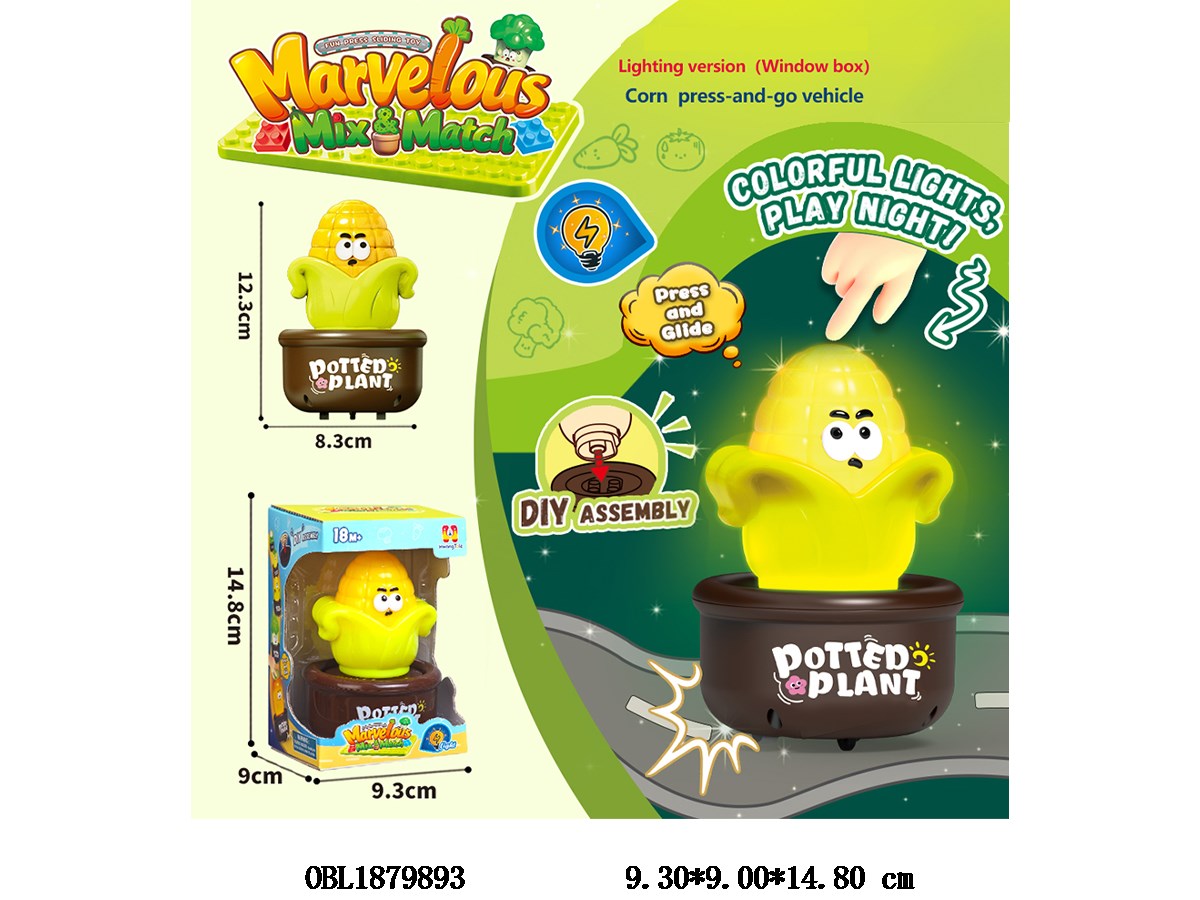 Home > Pressing Power Car > Pressing corn cart with lights, DIY detachable, equipped with building block base 3 * AG13, power included
